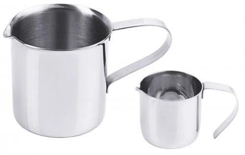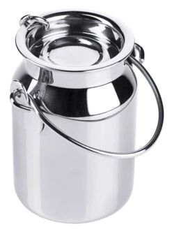 Sahnegießer, in klassischer Milchkannenform, aus Edelstahl 18/10, hochglänzend poliert, mit aufklappbarem Deckel, hochwertig verarbeitet