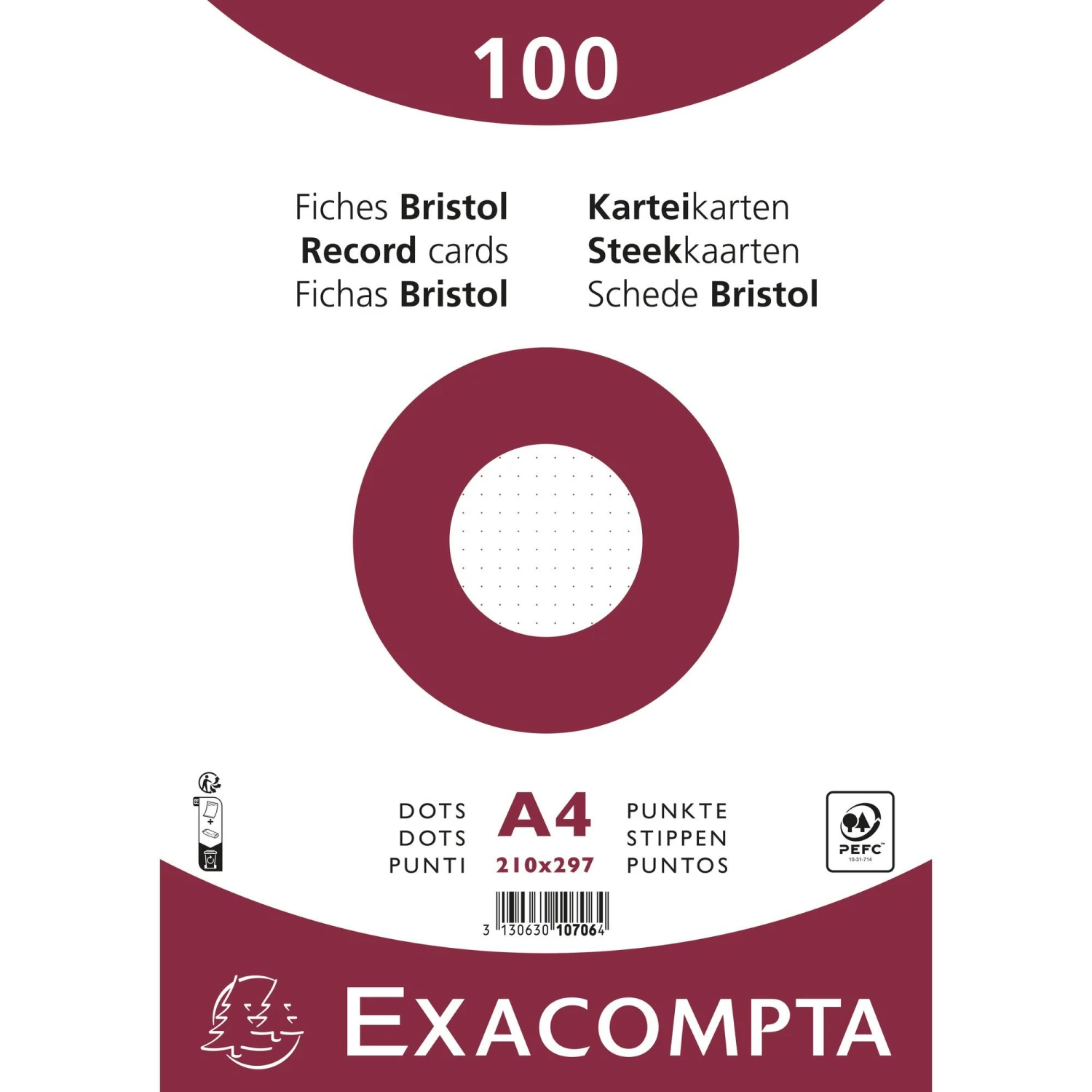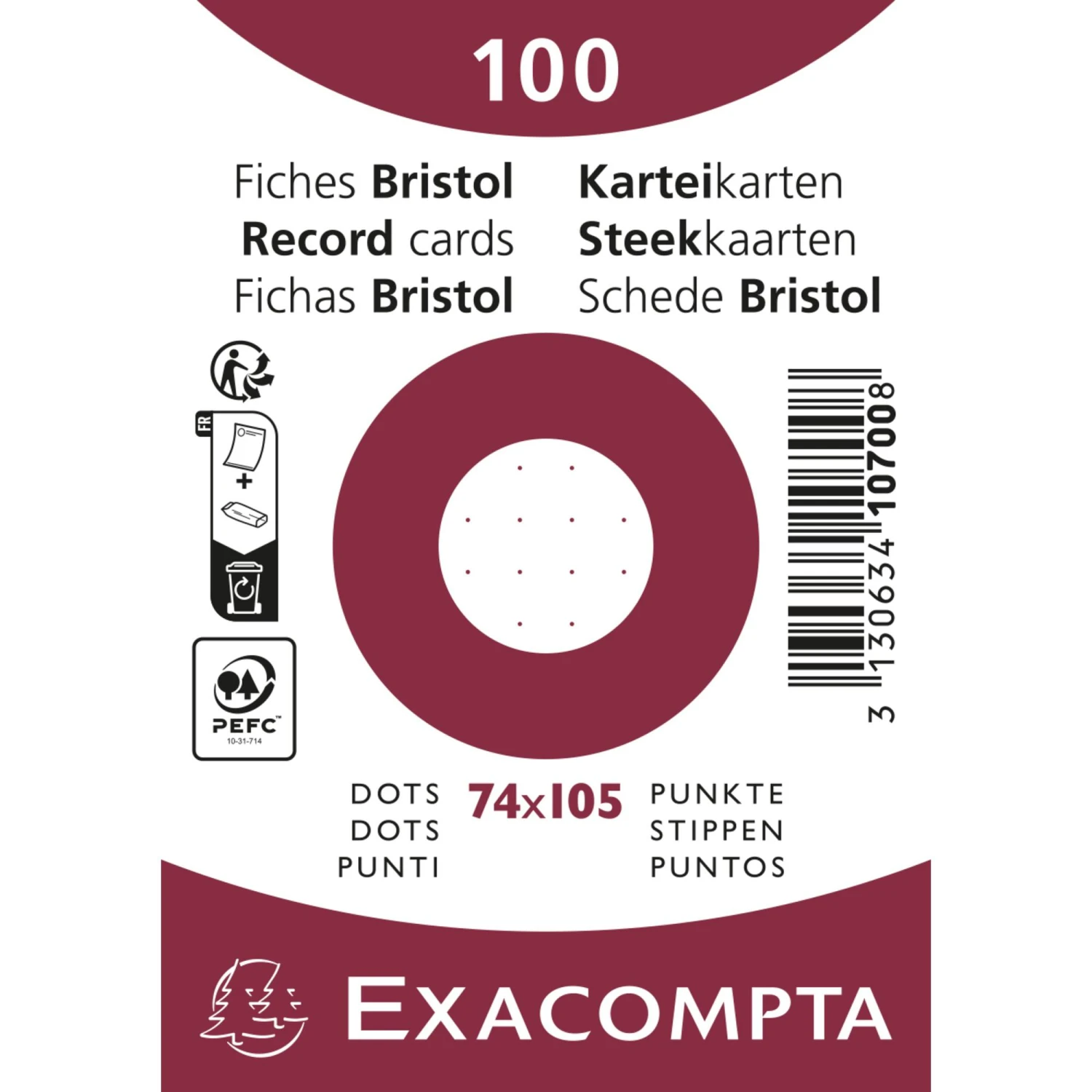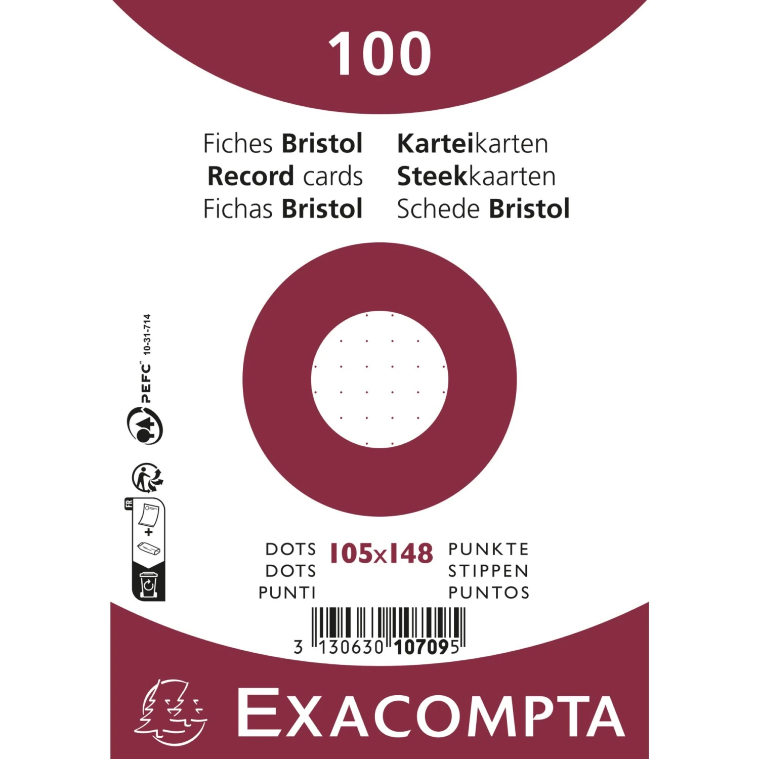 Exacompta 10708E 10x Packung mit 100 Karteikarten A5, eingeschweißt, DOT/punktkariert, nicht perforiert – Weiß