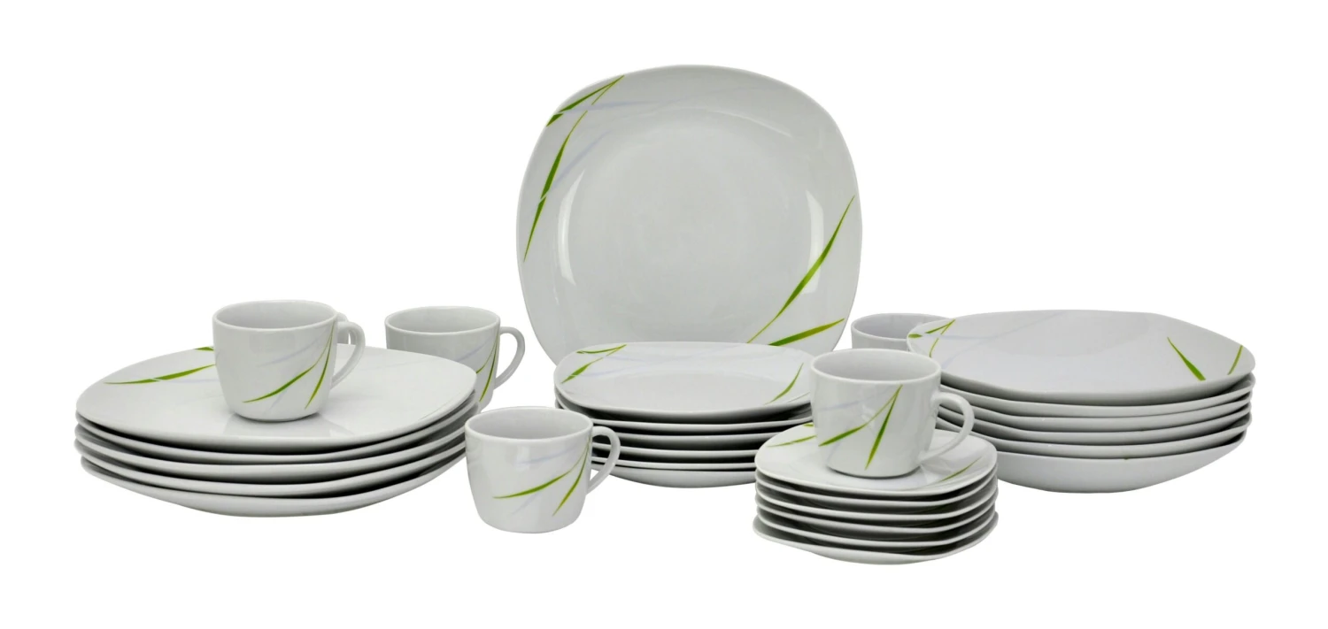 Kaffeeservice Aviva 18tlg. Weiß Mit Farbigem Dekor Für 6 Personen